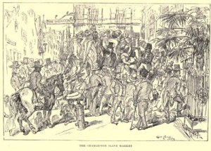 ‘The Charleston Slave Market’, by Eyre Crowe. Original sketch 1853 published in ‘With Thackeray in America’ (1893)
