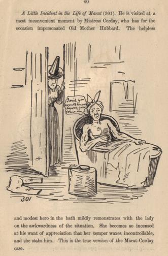 Line drawing of ‘Marat: 13 July 1793’ by Eyre Crowe (1879), published in Henry Blackburn’s Academy Notes, No. 5, May 1879, p. 35