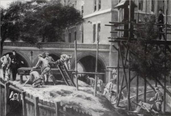 Pen and ink sketch version of ‘Convicts at Work, Portsmouth, by Eyre Crowe, published in Henry Blackburn’s Academy Notes, No. 13, May 1887, p. 105